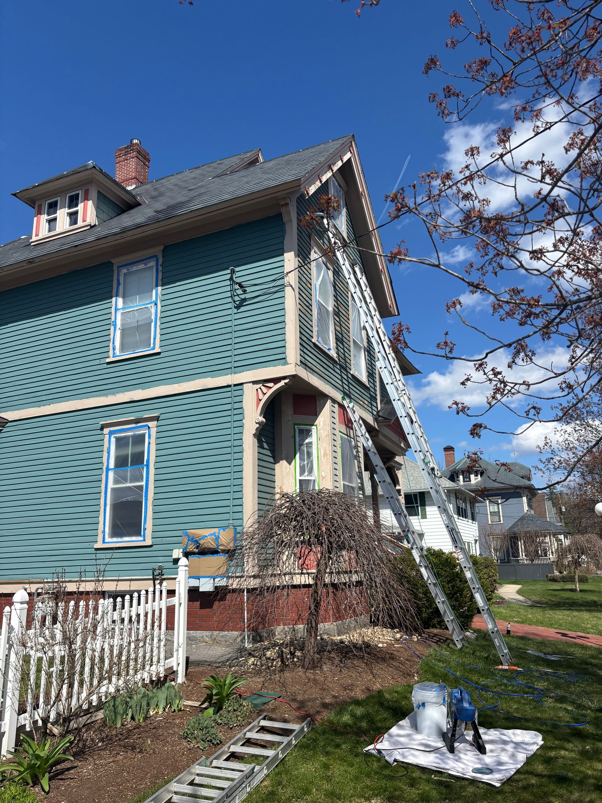 Power washing removes dirt, mildew, and loose paint, and allows the crew to inspect for underlying damage such as rot, insect holes, or cracked caulking. Those issues are documented during the estimate so you can arrange repairs before painting begins. The team does not paint over wet, rotted, or unprepared wood, and will not begin work if rain is forecast within the curing window. Temperature and humidity levels are monitored to ensure coatings dry and bond correctly.